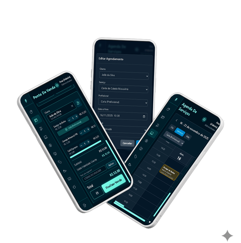 Descubra como nossa plataforma integra Ponto de Venda, Gestão Financeira, Sistema de agendamento, CRM e um poderoso Programa de Fidelidade em uma única solução intuitiva
